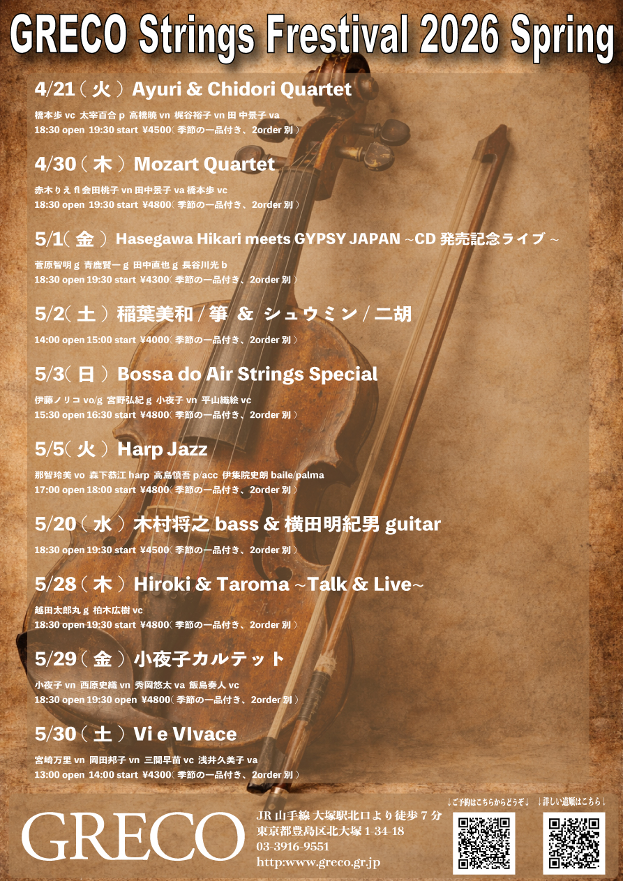 毎年春恒例、弦楽器の祭典!ご予約ご来場お待ちしております!